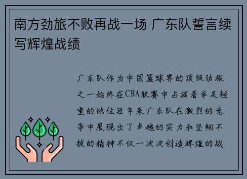 南方劲旅不败再战一场 广东队誓言续写辉煌战绩